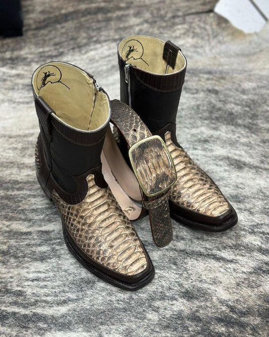 Laceless Leather Craft Anti-wrinkle Snakeskin Shoes